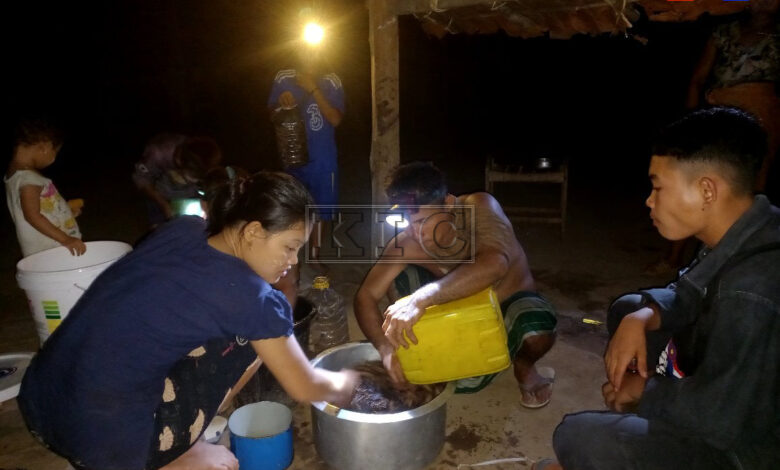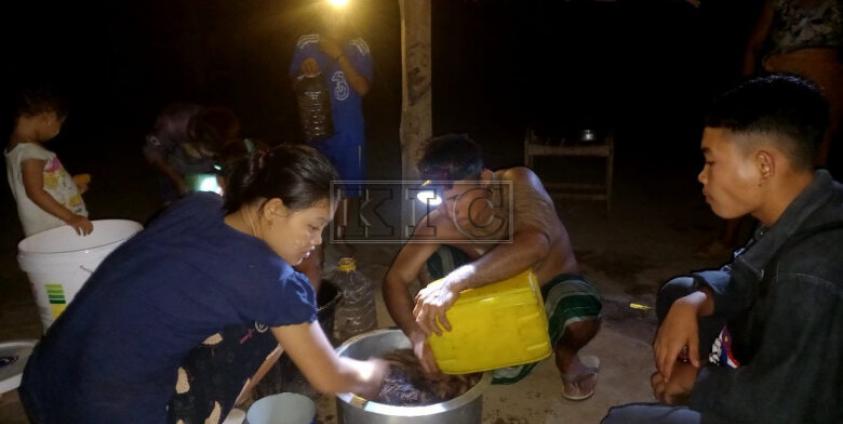 Constantly on the run from continued fighting in their area, residents of villages in Kyainnseikgyi Township, Karen State, have resorted to innovative ways to supplement their earnings. Villagers were forced to resort to catching wild crickets to sell to help eke out their living expenses after the Burma Army attempted to militarize the region following its coup on 1st February 2021.