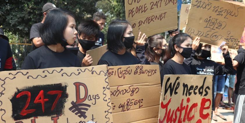 “The days of internet shutdown in our State has reached 200. It has affected various sectors including education, health, business etc. So we demand to resume the internet service immediately,” said Ko Kyaw Hlaing Htay, in-charge of information department of Rakhine student union.