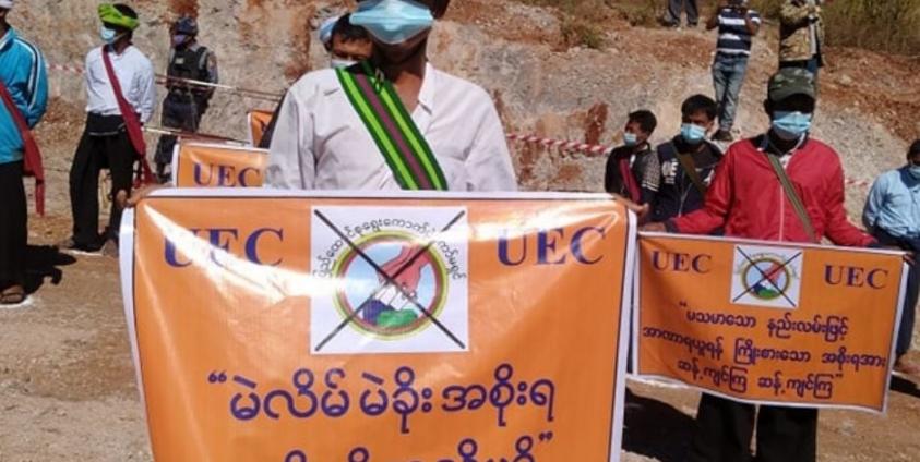 SENG PHOO, SHAN — A political party that contested Burma’s national election staged a protest to call for the abolition of the Union Election Commission (UEC), which oversaw the recent race, in Taunggyi, southern Shan State, this Tuesday, November 18.