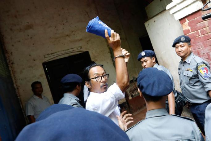 Filmmaker Min Htin Ko Ko Gyi (C) arrives at the Insein township court ahead of his trial in Yangon, Myanmar, 23 May 2019. Photo: Nyein Chan Naing/EPA