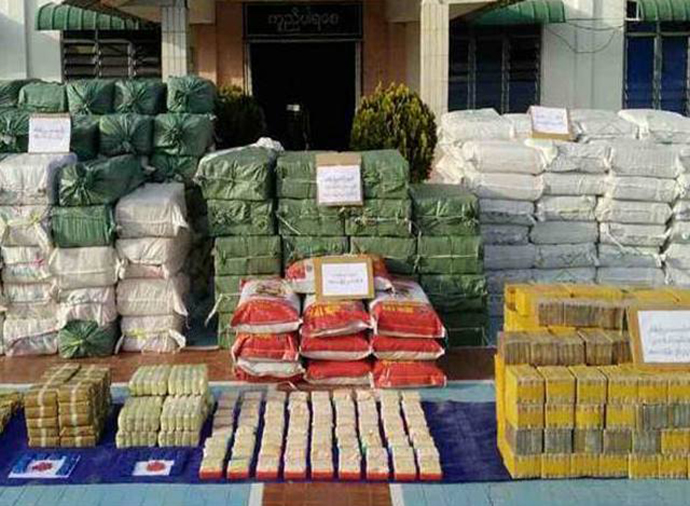 According to the Kutkai Anti-Narcotic Task Force, the anti-narcotic task force and local authorities seized over 30 million methamphetamine pills, 1,363 heroin blocks, 3,300 heroin bricks, and other drugs at the home of U Lauk Yaung in Kaung Khar Village under Kutkai Township at 8:30 am on January 17.