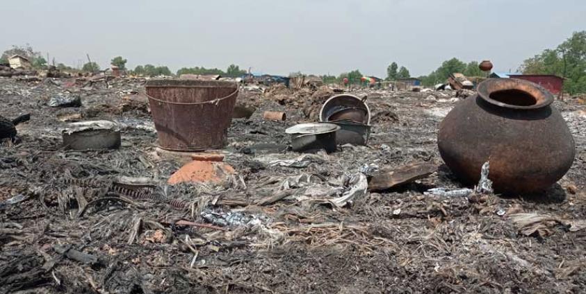 Tin Nyo IDP camp provides refuge for 3,355 people from 875 households, meaning more than two-thirds of the camp’s population lost their shelters in the March 17 fire.
