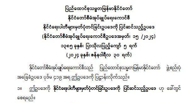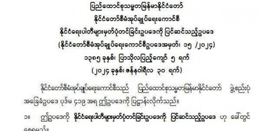 Prior to amending the law, during a meeting with political party leaders on November 23rd last year, the Junta’s UEC indicated that certain submissions for party registration failed to meet the prerequisites of the previous legislation.