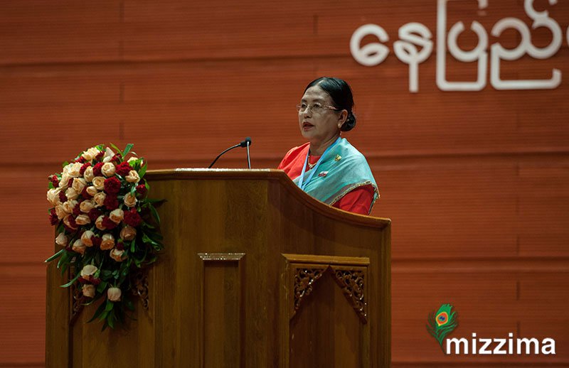 Rakhine National Party (RNP) Vice-Chairperson Aye Nuu Sein speaks during the third session of the 'Union Peace Conference - 21st century Panglong' in Nay Pyi Taw on 11 July 2018. Photo: Mizzima