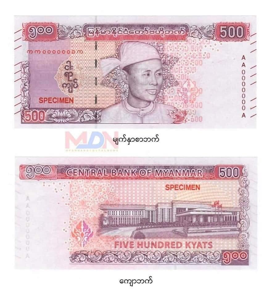 The new 500 kyat currency note size will be 150 millimeters long and 70 millimeters wide, and printed with reddish brown ink. The “Central Bank of Myanmar” will be printed on front page of the note.
