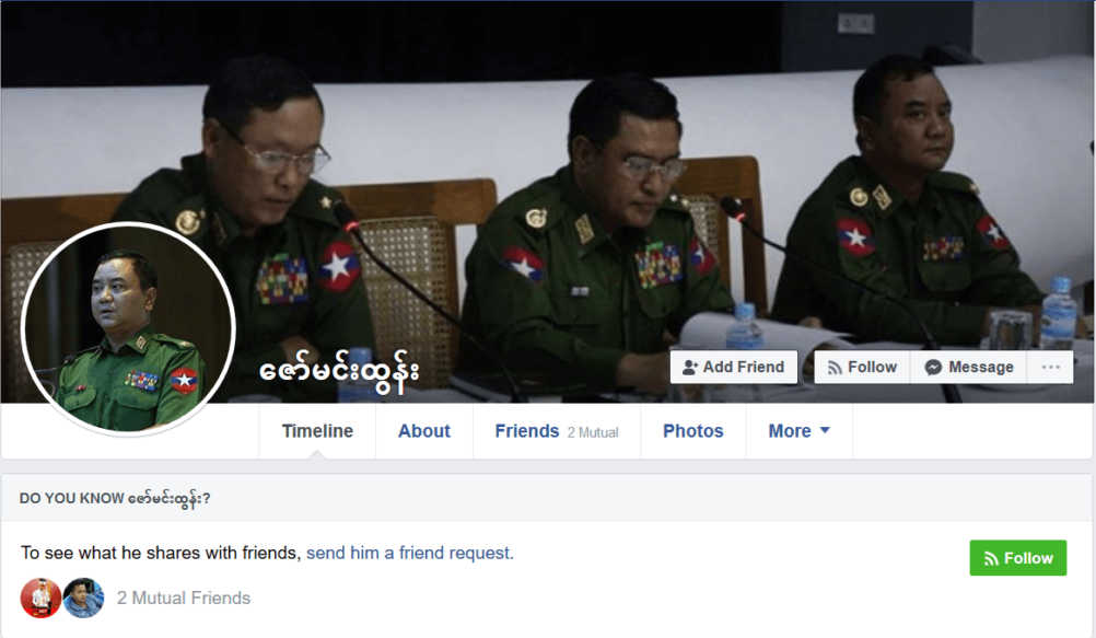 The Military opened two Burmese-language Facebook accounts called “Tatmadaw True News Information Team” and “Zaw Min Tun,” military spokesman Brigadier General Zaw Min Tun told Radio Free Asia (RFA) on June 10 Wednesday.