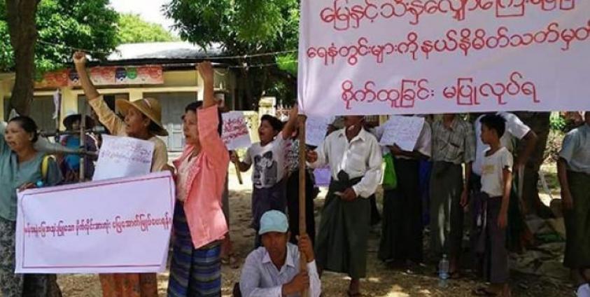 Farmers in the Mann oilfield area in Minbu Township, Magway Region staged a protest yesterday over alleged failures by the authorities in correctly offering compensation for land seized decades ago.