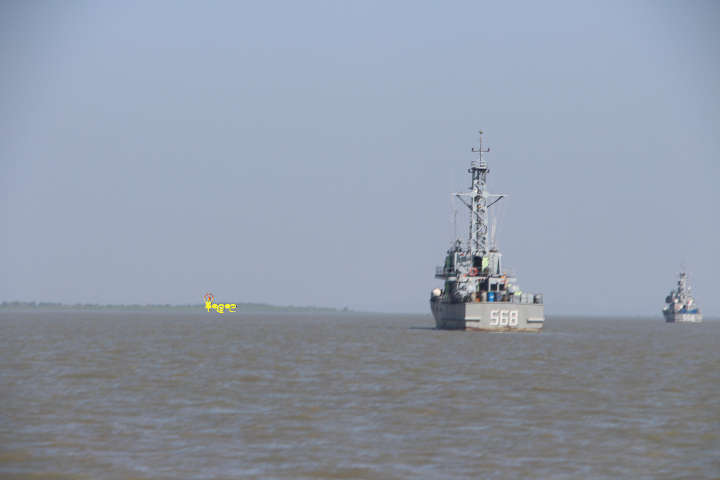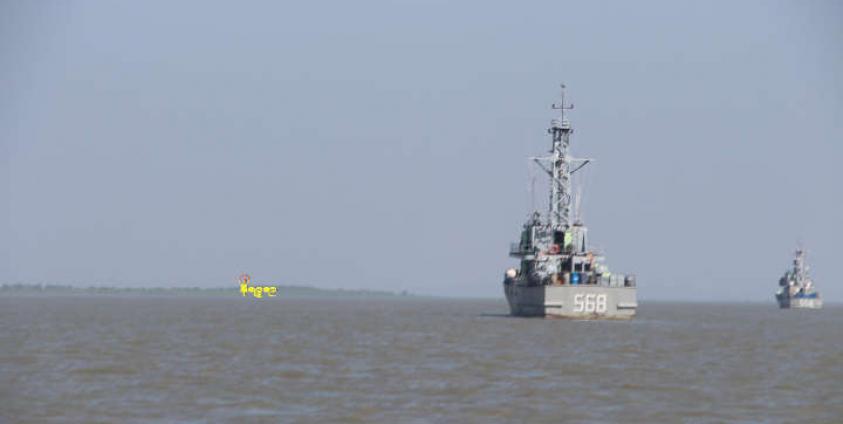 When the navy ship arrived at a location near to LIB 376 in Rathidaung at around 6 pm, security personnel started firing by cannons to several locations in the western part of Mayu river.