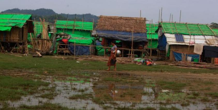 Rakhine ethnic people who fled from conflict areas gather at War Taung village's temporary camp in Kyauk Taw Township , Rakhine State, western Myanmar, 18 June 2019. Photo: Nyunt Win/EPA