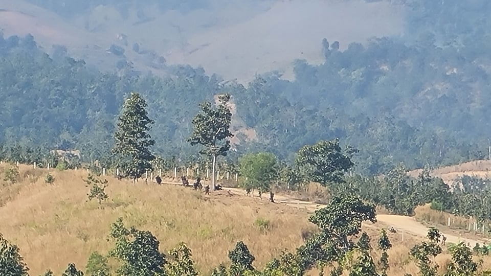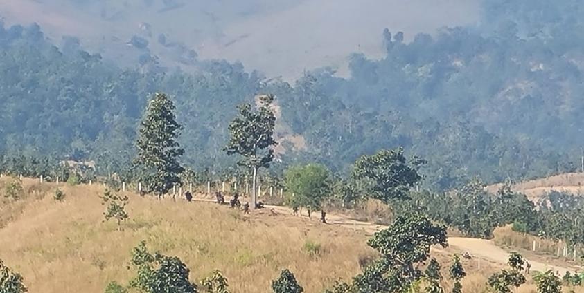 The reporter said the Burma Army Light Infantry Battalion 560 have now taken up positions on hilltops and in resident’s homes and are firing artillery and mortars towards the bases of the mountain range behind Lay Kay Kaw New Town, targeting KNLA or PDF positions.