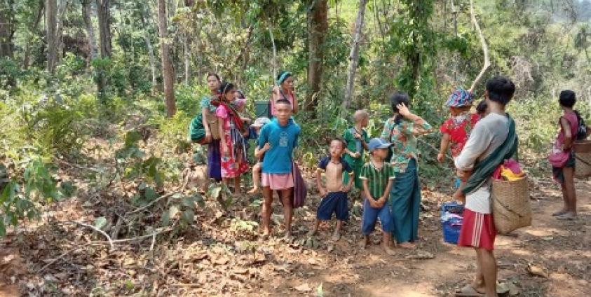 Photo: the refugees from Hpapun who has fled due to the motor shelling by the military council troops in April