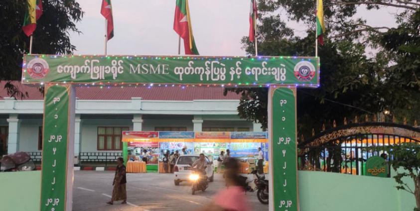 The products of 22 entrepreneurs from Kyaukphyu District are being displayed at the exhibition. Participating entrepreneurs have taken the opportunity to also present their difficulties and needs to junta officials.