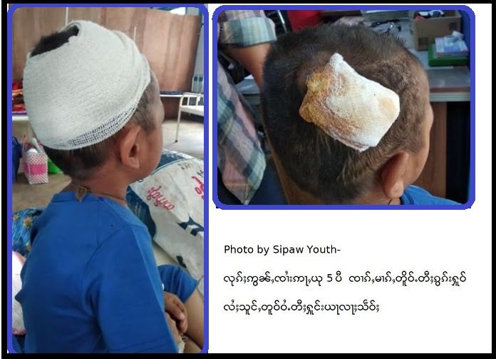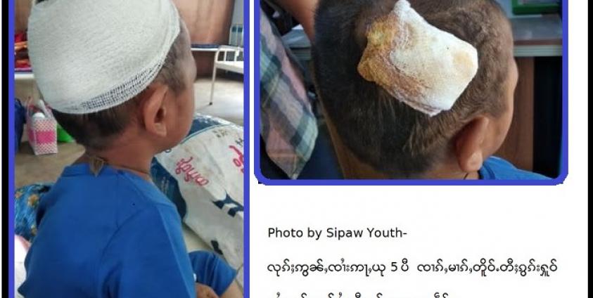 A five-year-old boy was transferred to a Lashio hospital on Wednesday after being hit in the head by shrapnel during clashes in northern Shan State earlier this week.