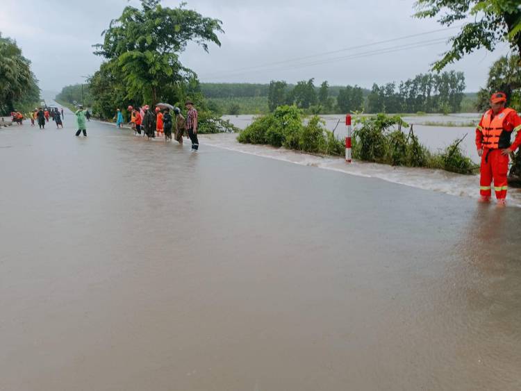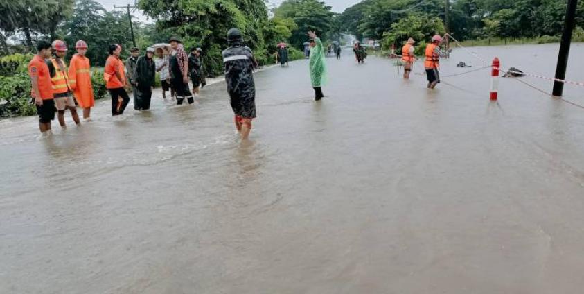Flooding has also occurred along the Yangon-Mawlamyine highway. Rescue teams are helping cars and motorcycles pass safely along the Mudon-Thanphyuzayat highway between Naepado-Kwanhla. Flooding is also reported in Beilin, Paung, Thanphyuzayat, and Ye townships.