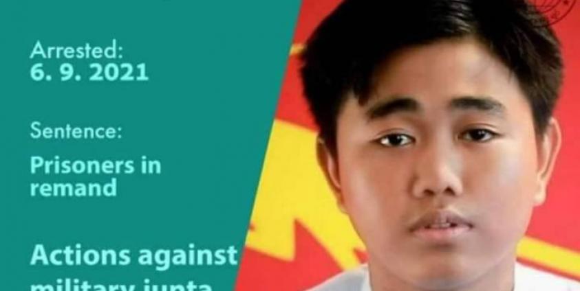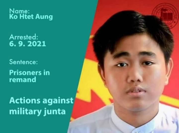 Ko Htet Aung, a third-year student majoring in geology at the University of Pyay in Bago Region, was arrested in Paungde town on September 6 for protesting against the military coup, which toppled Myanmar’s democratically elected government on February 1, 2021.