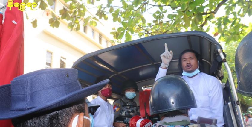"The protests began at around 1 pm. After one hour of march, we were intercepted and arrested by the police near Innwa Bank in Kyay Pin Gyi ward. Soon the crowd was dispersed,” added Toe Toe Aung.