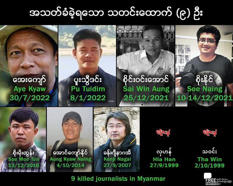 Four journalists were killed in Myanmar since last year’s military coup, and five others were killed before the putsch dating back to 1999, with the perpetrators of these crimes enjoying impunity, Free Expression Myanmar (FEM) said in a statement marking International Day to End Impunity for Crimes against Journalists on Wednesday