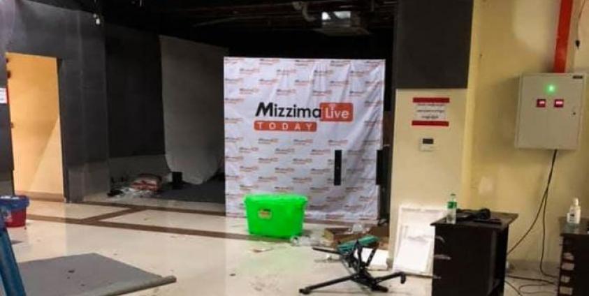 Mizzima’s newsroom is pictured following a raid by security forces.