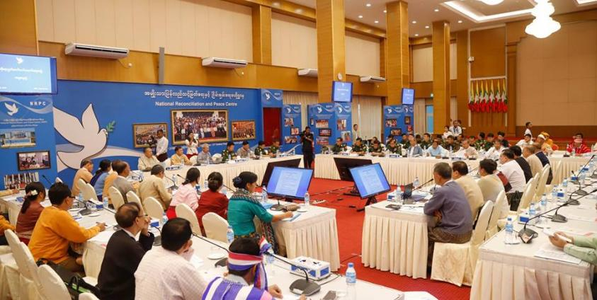 Secretaries of the Union Peace Dialogue Joint Committee U Khin Zaw Oo, U Hla Maung Shwe, U Zaw Htay, U Aung Soe, and Lt-Gen Tin Maung Win, joint committee members, representatives from the government, the Hluttaw, and Tatmadaw agencies, the government’s group of people who deserve to attend the conference, ethnic representatives, and advocates attended the meeting, according to the State Counsellor’s Office Facebook page.