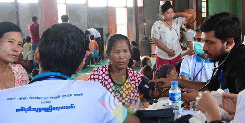 Members of the group spent this year’s Thingyan holidays providing medical treatment and healthcare information to residents of three camps set up for internally displaced persons (IDPs).