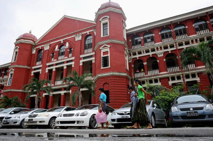People walk in front of Yangon General Hospital in Yangon. Photo: Lynn Bo Bo/EPA