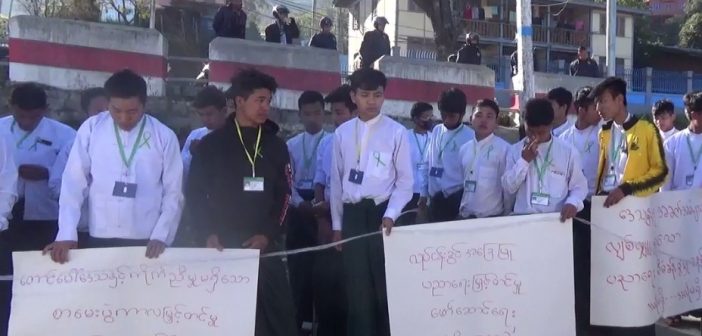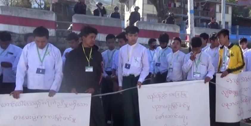 On Sunday, nearly 100 teachers and students in Hakha protested the Ministry of Education order and changes to the examination schedule.