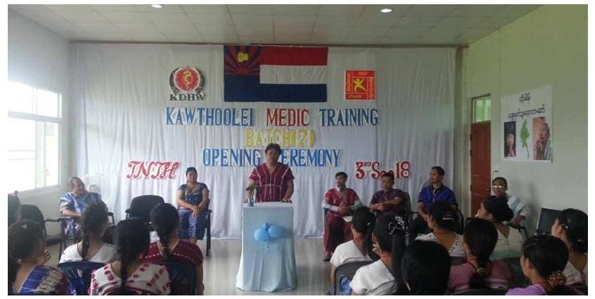 Saw Eh Phoe, in-charge of the KDHW Central Training, said the a medic training course is being given at Taw Naw Training Hospital in Kawkareik Township, Doopalaya District since September 3 to health workers who have passed the basic health level.