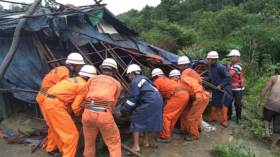 The hammering rain sank 24 houses in Thiho Aye village, 5 houses in Ywar Tharyar village, five houses in Kan Pyin Tharsi village, and 12 houses in Waitharli village.