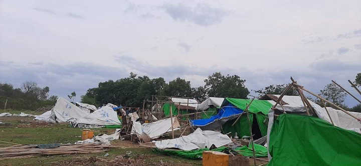 On May 27 at around 2 pm, a storm hit Kaing Gyi camp, blowing away and destroying tents. The situation has further deteriorated as the rainy season has started, making living conditions even worse, according to the Ko Shwe Soe, who is responsible for the camp.
