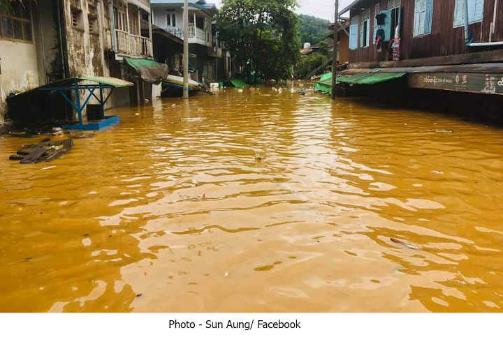 As of Monday, Lon Khin, Hpakant, Seng Tawng, Tarmakhan and Nget Pyawtaw were facing rising water levels as rain continued for the third consecutive day.