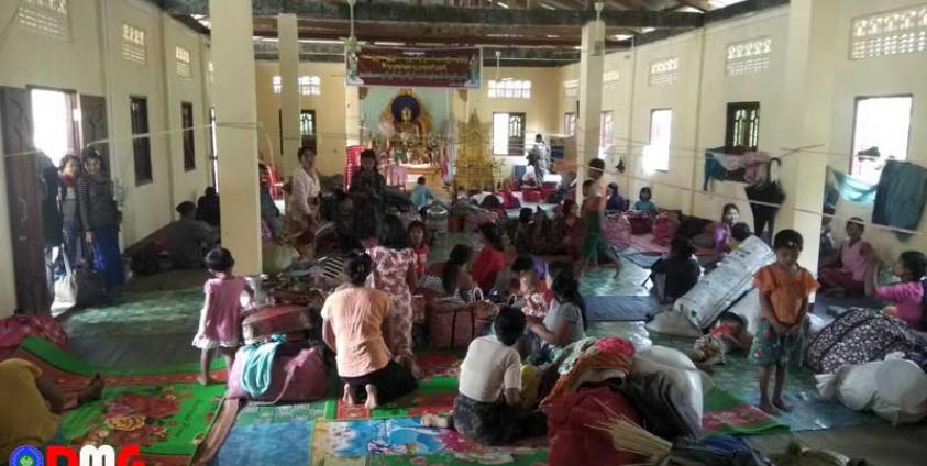 Residents from some villages in Arakan State’s Buthidaung and Rathedaung townships fled their homes amid a steady barrage of artillery fire and have been sheltering at the Mya Taung Monastery’s community hall in Buthidaung town since February 15, Ko Tun Myat Win told DMG.