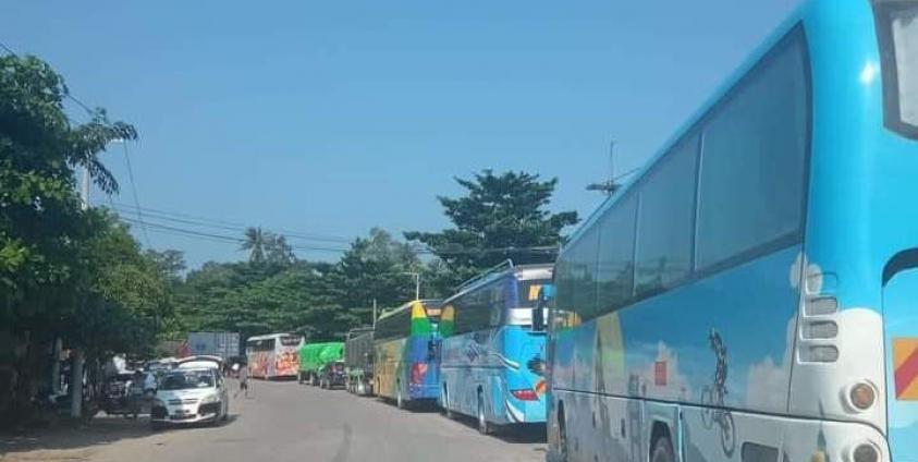 Hundreds of vehicles were trapped along the Asia Highway linking Kawkareik and the border town of Myawaddy in Kayin (Karen) State on October 19 as fighting that first flared on Tuesday night continued the following day.