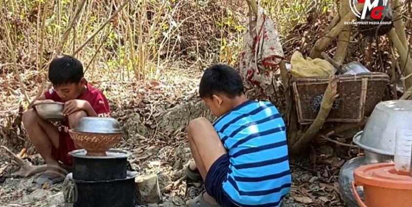 “We’re really struggling to make ends meet. We can’t find any jobs. Every time we go out looking for a job, we come back empty-handed and feeling down. We’re depressed. We don’t have enough food, we can’t wear what we want, and we can’t eat what we wish. Life is just really hard,” said Daw Yi Mar Win, a displaced woman from Kyauktaw Township.