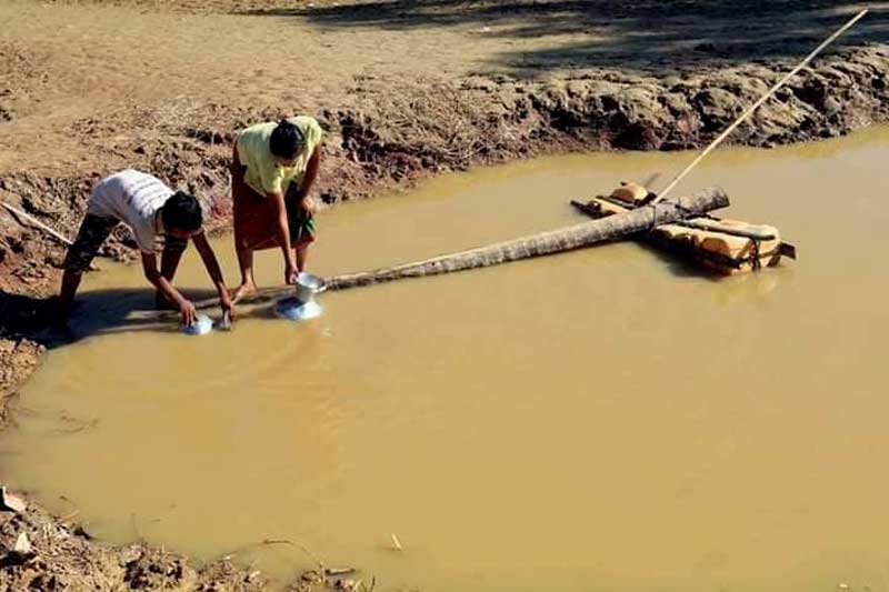 One such camp is Taung Min Kalar in Kyauktaw Township, where more than 500 refugees are sheltering. There, IDPs are using murky pond water, which has started to dry up, with a quota system now in place, refugee Daw Aye Ma Khaing told DMG.