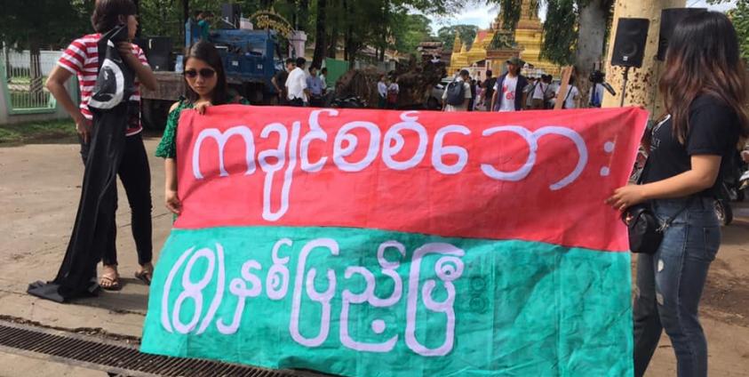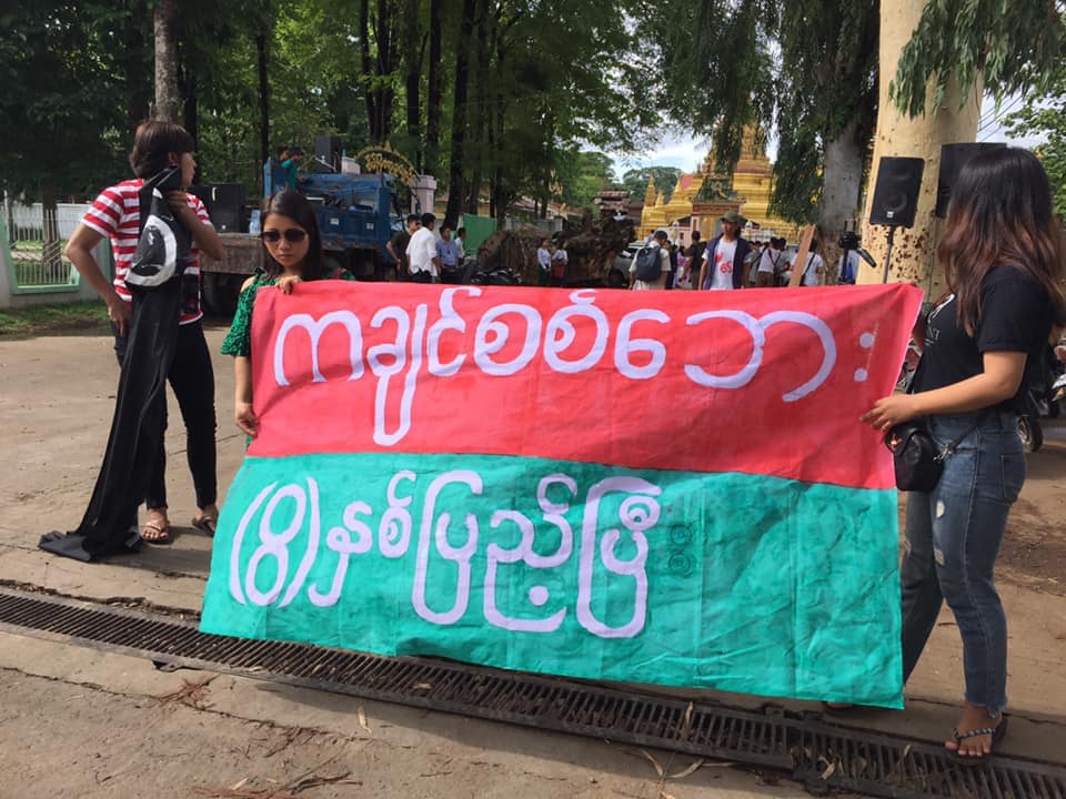 Groups of youths gathered at two locations in the city—the Sein Mya Aya Park and the Gen. Aung San Statue Square—to put on street performances to mark the eighth anniversary of the war.