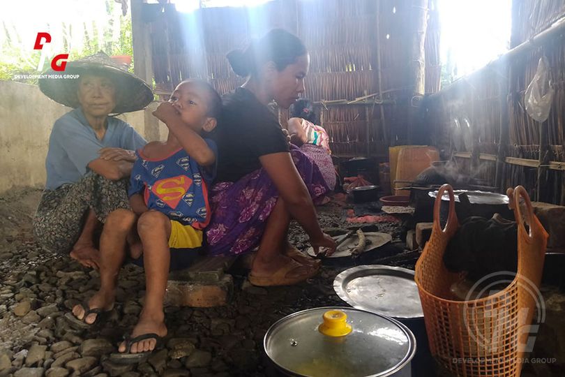 A displaced woman sheltering in Pauktaw Township said, “We have no income now, and it’s extremely difficult to meet our food and basic needs. I can't do any work, and I can't afford to buy food. On days when we can find something to eat, we do. When we can't, we mix rice with the surplus water that drains off while cooking rice and eat that.”