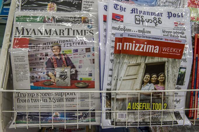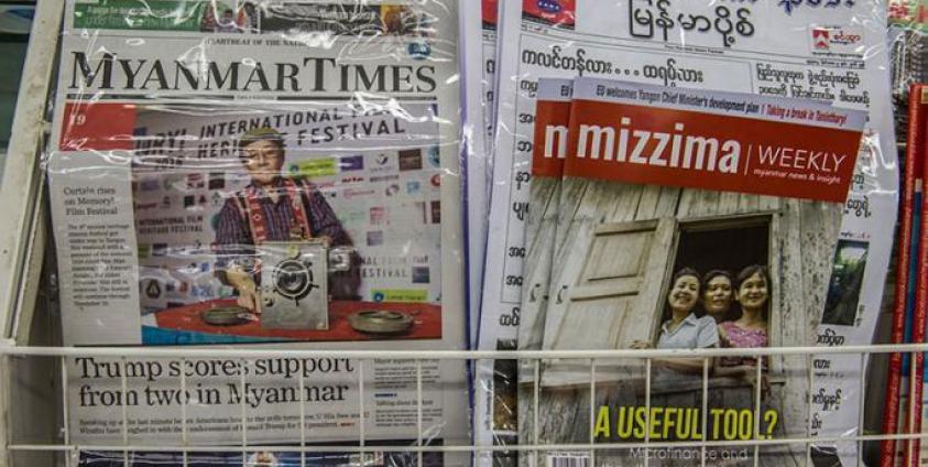 Caption: A Myanmar newspaper stand in Yangon. Photo: AFP