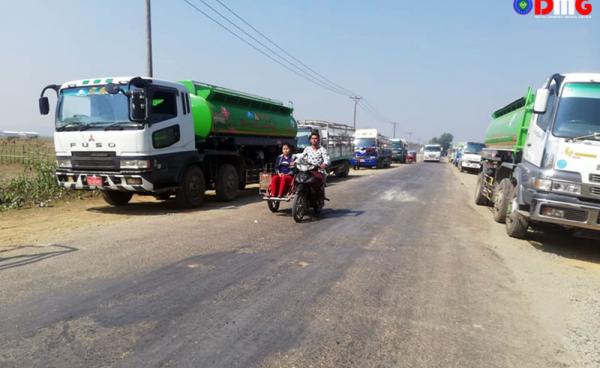 More than 300 vehicles including cargo trucks and buses traveling along the Yangon to Sittwe road are stuck due to fighting near Rar Maung Bridge in...