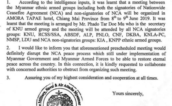 Burmese Embassy requests Thailand to disrupt and a planned summit of ethnic armed organization (EAO) leaders in Chiang Mai, Thailand, this weekend...