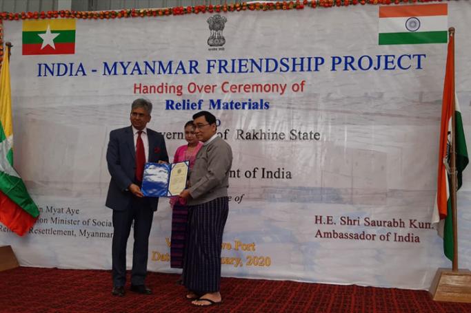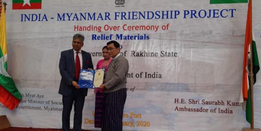 The Ambassador of India to Myanmar handed over to Rakhine State Government, Government of India’s relief assistance for the civilians of Rakhine State displaced as a consequence of ongoing conflict, according to a press release.