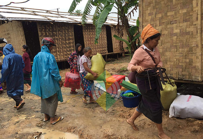 Internally displaced persons (IDPs) from Hpung Mai Yang in Injangyang Township, Kachin State have relocated to a new IDP camp in morning of July 23 after taking temporary shelter at the Kachin Baptist Convention (KBC)’s branch office in Waingmaw Township.