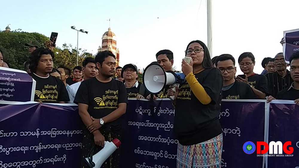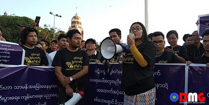 Activists including Arakanese lawmakers U Oo Hla Saw and Daw Htoot May demonstrated in Yangon on December 24, demanding that the government restore internet access to all of Arakan State.