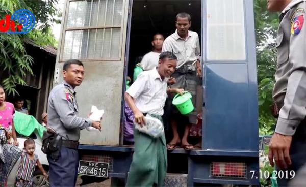 Six men from Kyauktan village in Rathedaung Township who have been detained and accused of involvement with the Arakan Army appeared in the Sittwe...