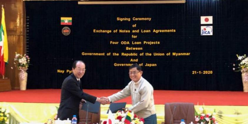 Mr. Maruyama Ichiro, Ambassador of Japan to the Republic of the Union of Myanmar and U Maung Maung Win, Deputy Minister for Planning, Finance and Industry signed, the Exchange of Notes for the following four Yen Loan Projects, which will be implemented with the loan worth about 120, 915 million Yen, in Nay Pyi Taw on 21 January 2020. According to the press release, these projects are: