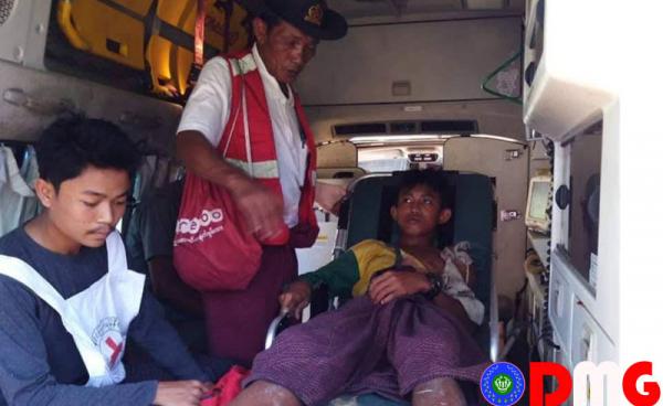 Two people, who were hit and injured by stray bullets from Yay Bote village in Rathedaung township, were sent to hospital on October 28 with the help...