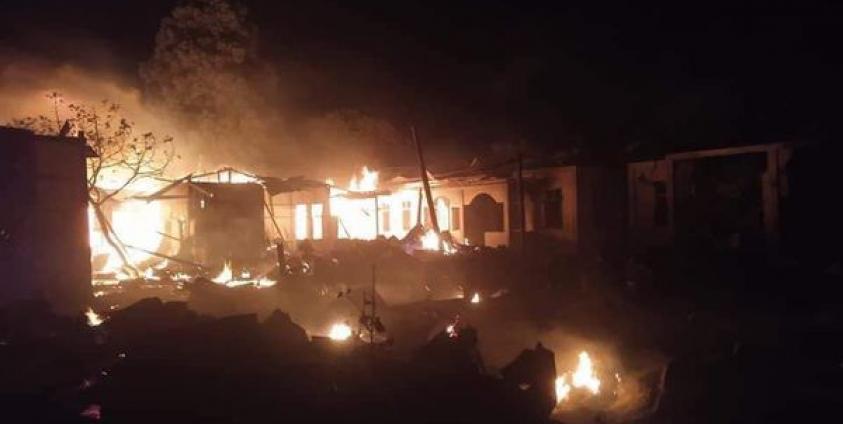 On the same day at around 4:00pm a Junta aircraft dropped a 500-pound bomb on Mindat's District No. 1, locals said. The Junta deployed a Y12 utility aircraft to drop a total of fifty 60 mm mortar shells, sparking a wildfire in a forest area in Mindat.