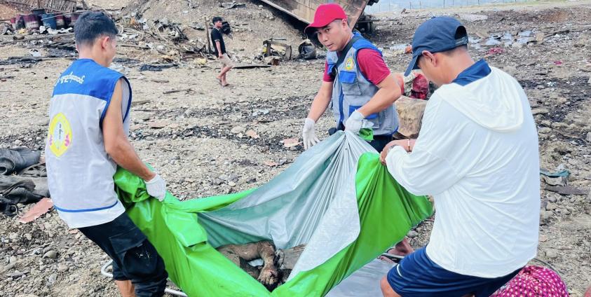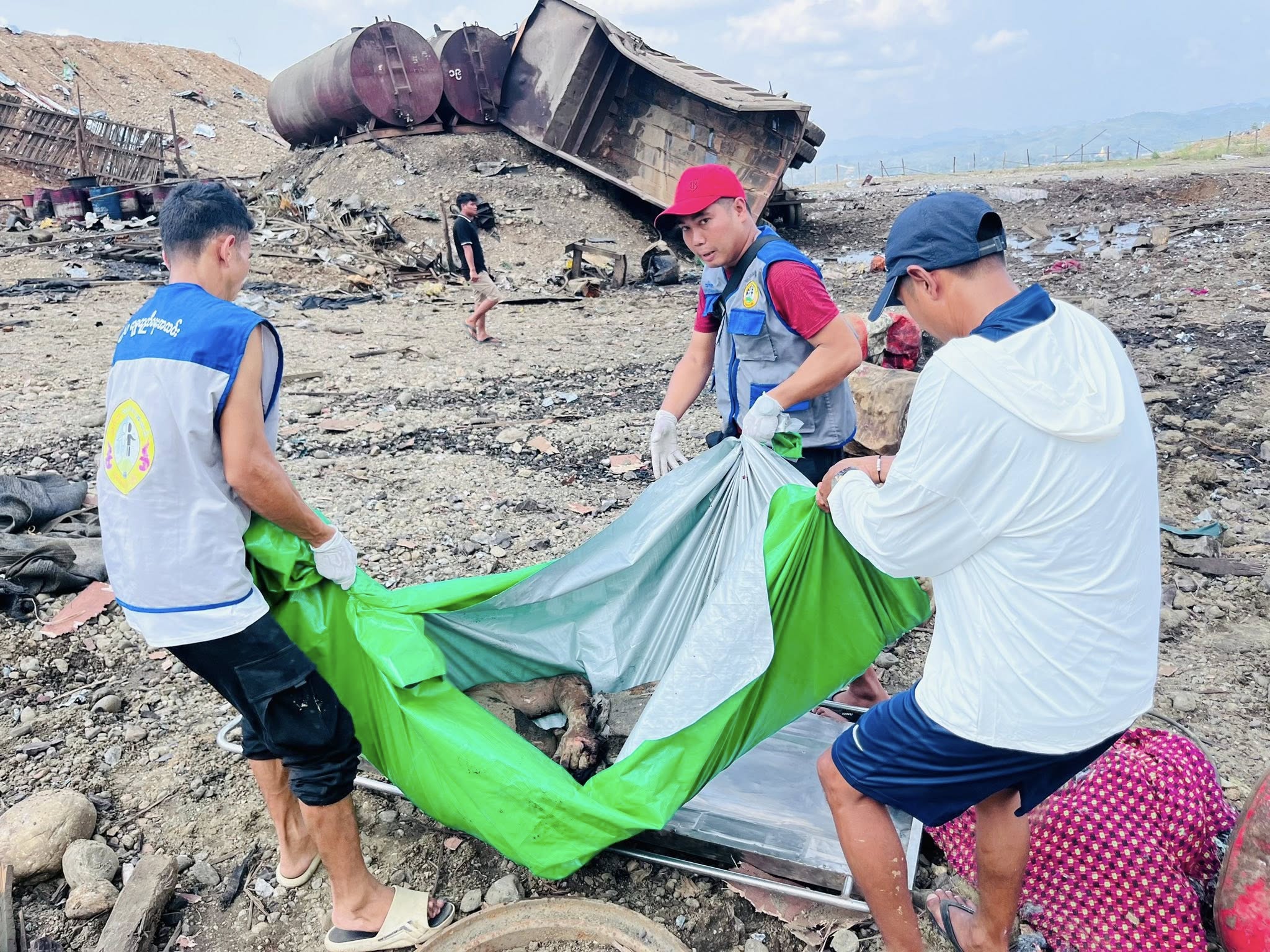 Later that day, 3 June, at around 1:00 pm an artillery shell hit a jade mining company building where gunpowder was being stored and caused an explosion in Saungchain Village, just north of Mawsisar Village in Lone Khin Village Tract. Two employees were killed and around 20 others were injured.