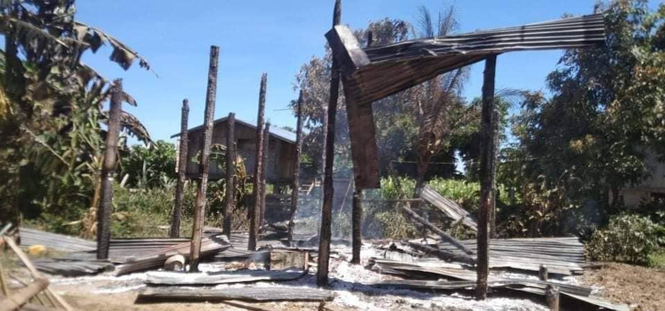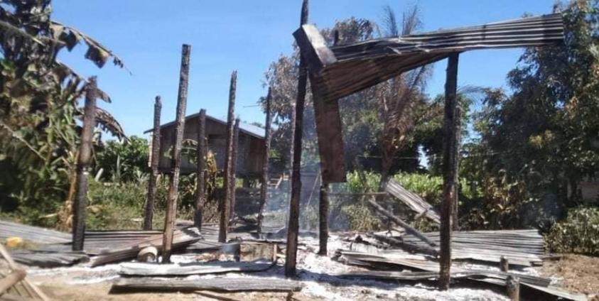 The regime burned down people's homes in Tharyar Kon, although there had been no previous fighting in the village in Shwegu Township, Kachin State.