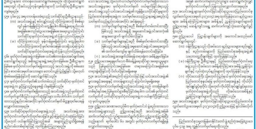 The law states that if a person is found guilty of violating the provisions of these two sections, they must be fined not more than 500,000 Kyats or imprisoned for up to two years.