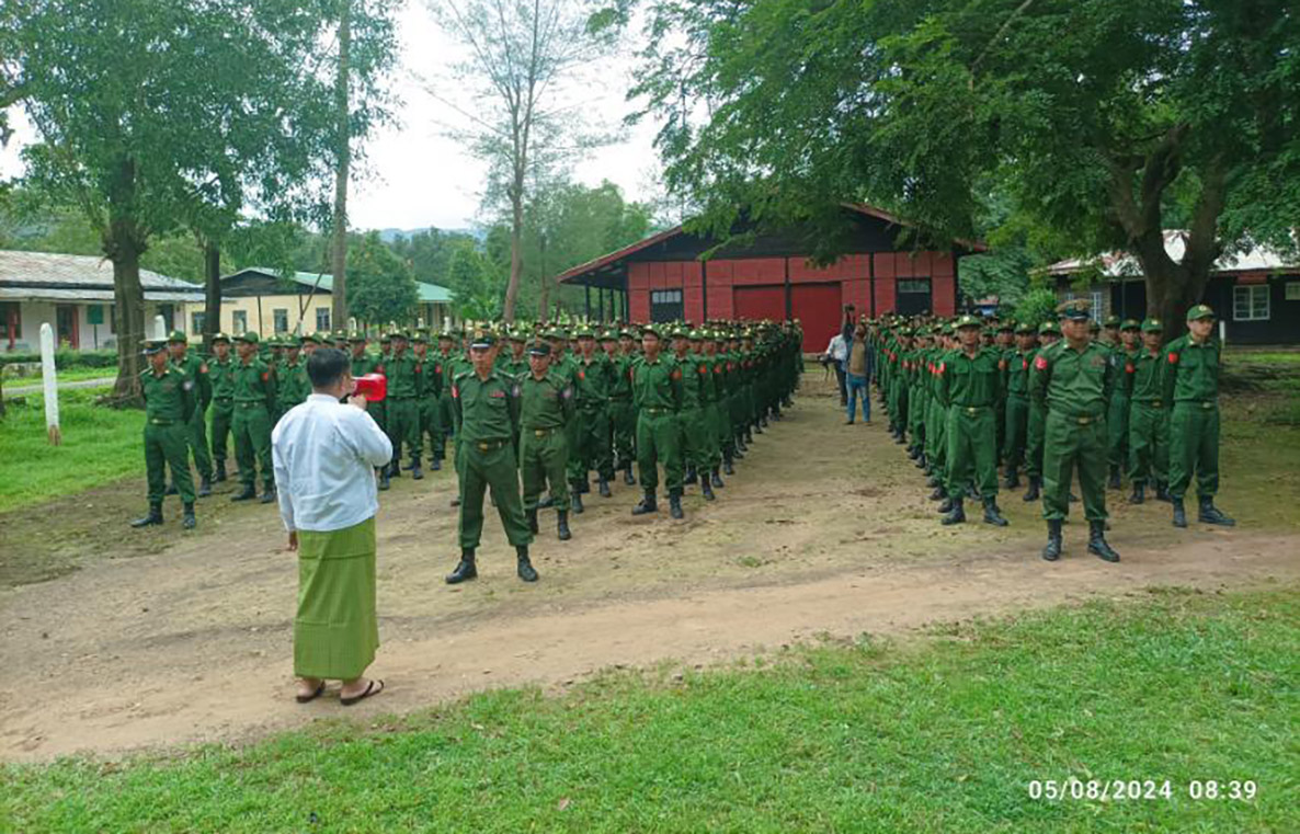 On 5 August the junta released photos approximately 150 newly conscripted men taking part in a ceremony at the beginning of their training at MATD - 4. They were the fourth batch of conscripts from Mon State.
